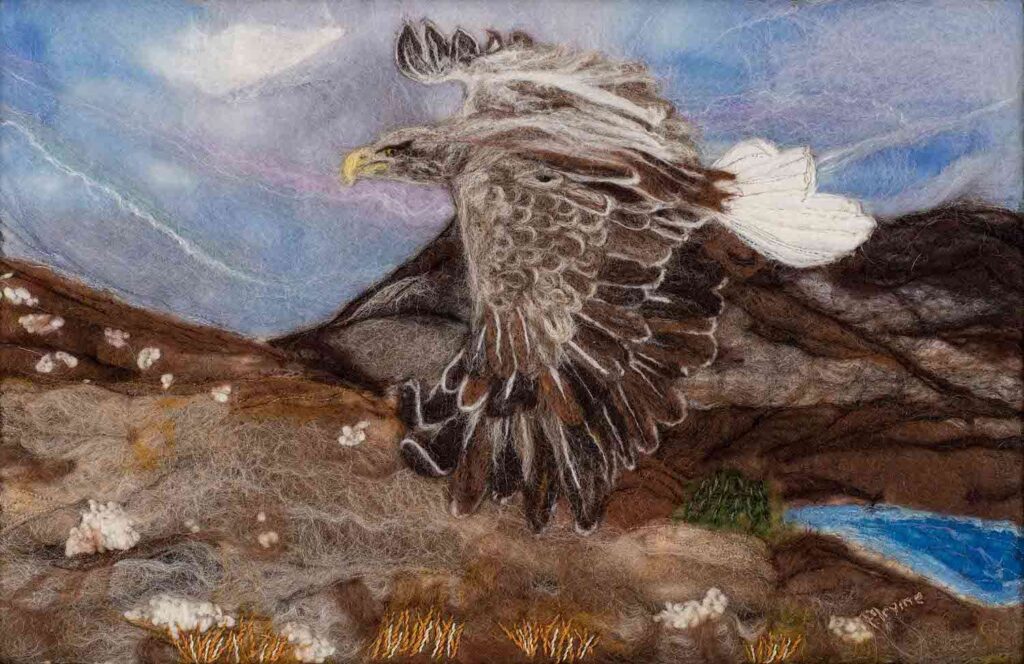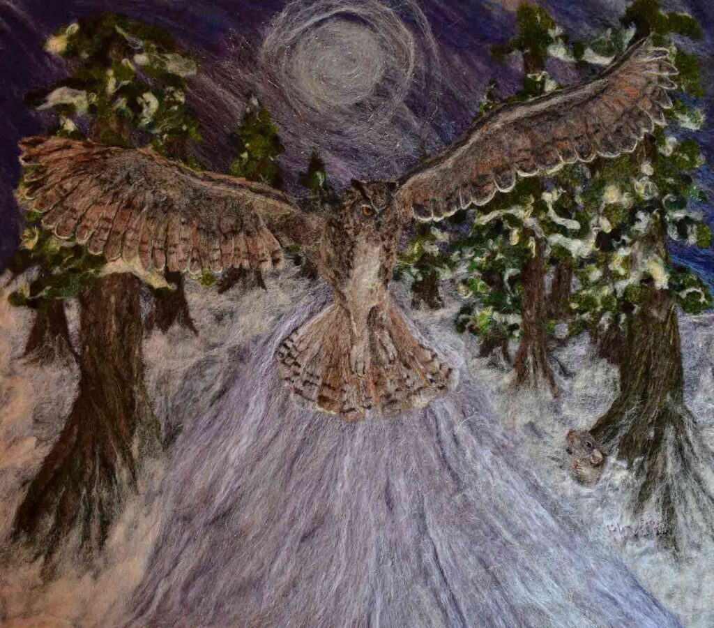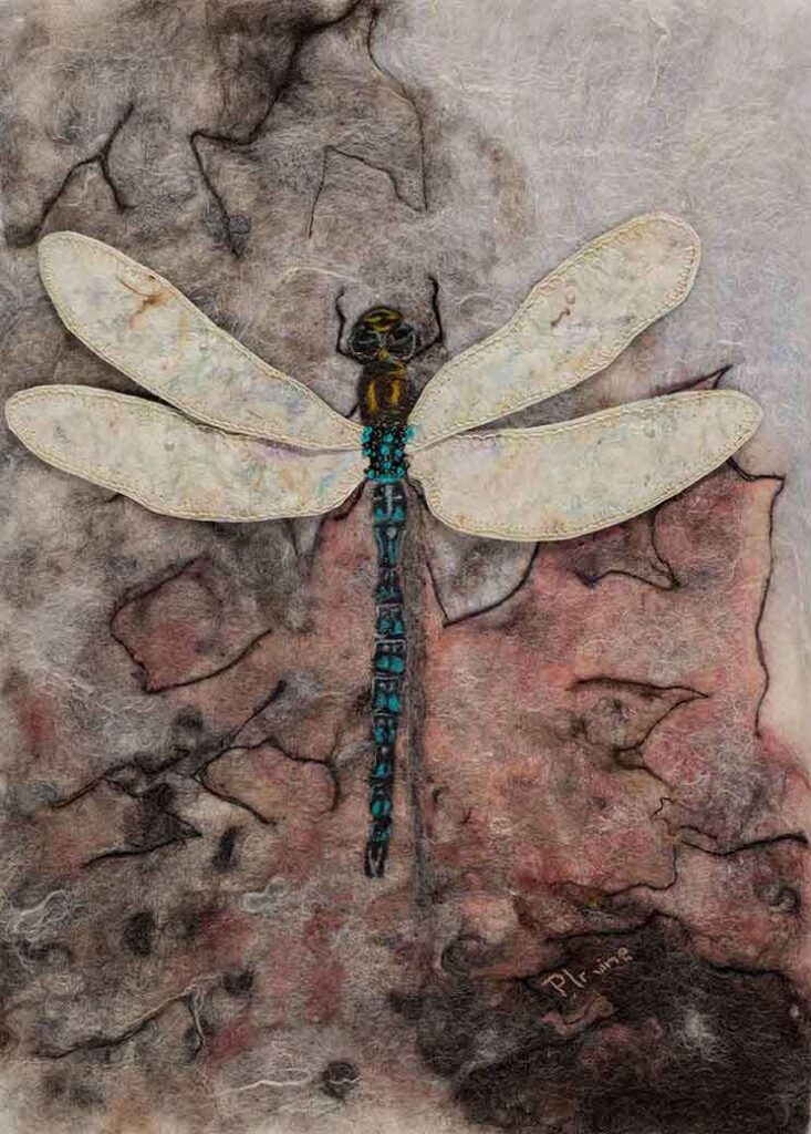 Bringer of Light was a commission – The original photograph was taken by the customer. It is wet/needle felted with hand embroidery detail on the body. The wings are made from handmade silk paper that were then stitched to the piece.