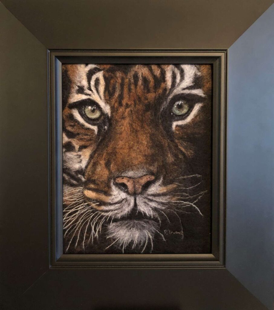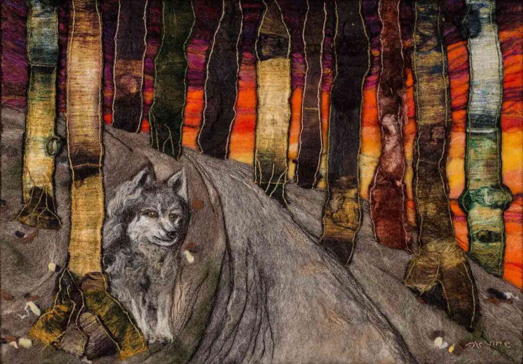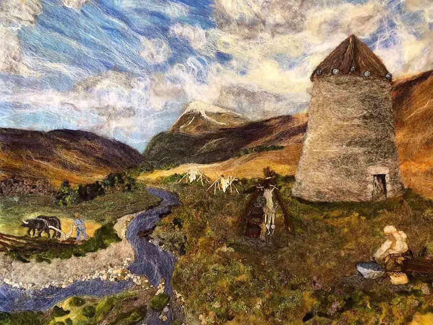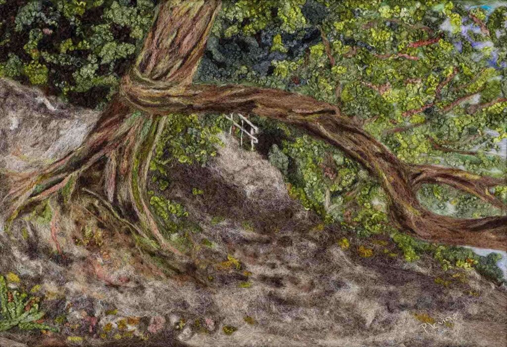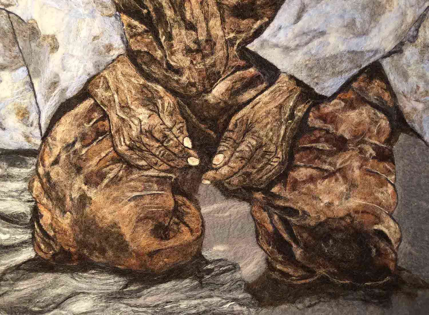 Pray is a wet felted background with needle felted foreground and detail.