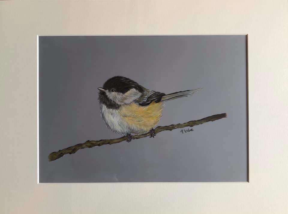 My original drawing of a Chickadee. It is hand drawn using coloured pencil on drafting film.