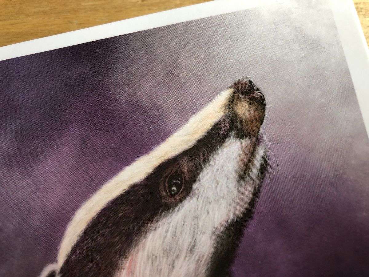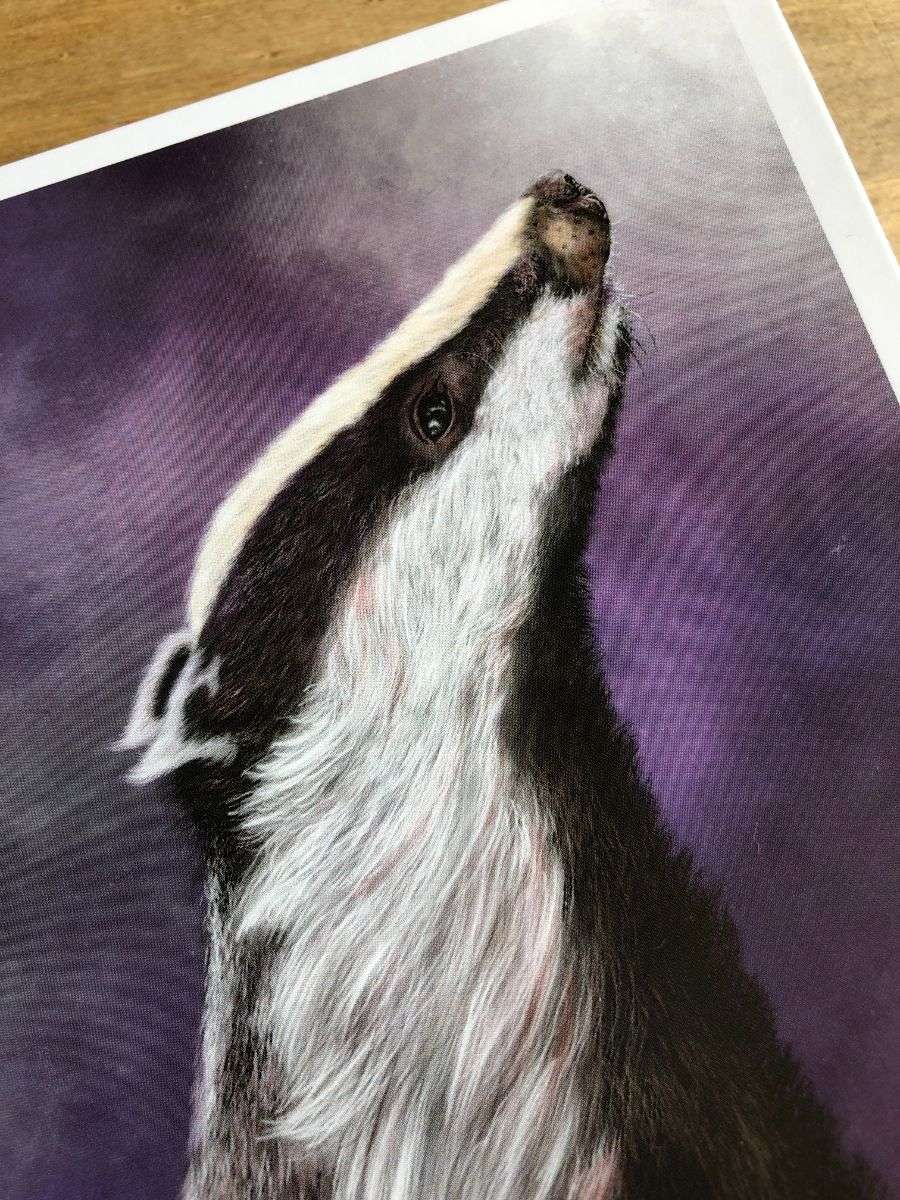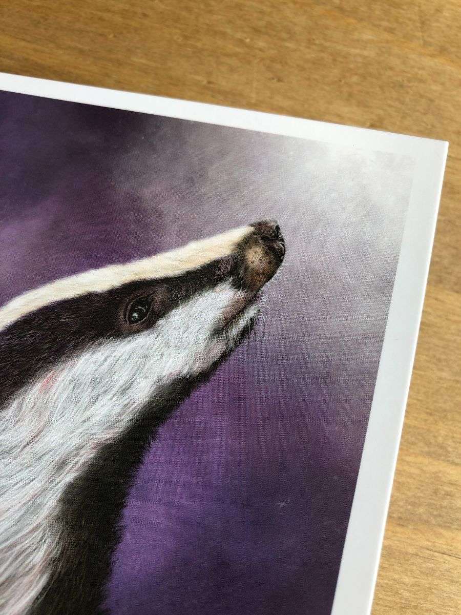 A high quality 5 x 7 greetings card featuring my original and digital artwork The Night Watchmen. It features a Badger.